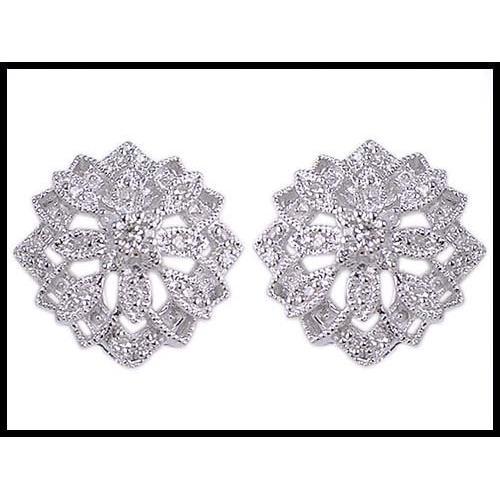 Here we have the work of a master goldsmith who has formed 14K solid white gold (6.66 grams) to perfection. He has set 42 sparkling diamonds to give the feeling of a snowflake in the design.They measure 16mm (5/8") wide x 16mm (5/8") long. Elegant, to say the least, and affordable for all.