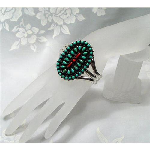 <tr><td>Title:SO Fine~Tribal Turquoise Coral Sterling Cuff</td></tr>
