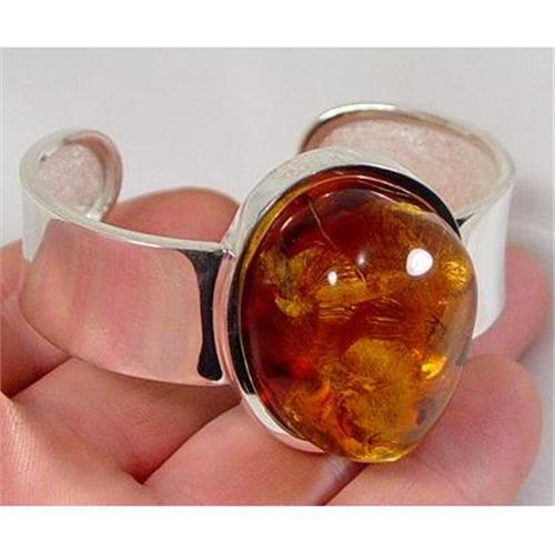 SO Precious Cognac Baltic Amber Bracelet weighing in at 52.1 grams... Directly from the finest Polish designers this amber cuff bracelet is absolutely sure to leave a lasting impression and is the finest money can buy. The artist has used ultra modern sterling to provide a stunning creation. The amber has measurements of 39x28x22 and for those not familar with metric 25mm=1". The inside measurement is 6" with a 1" opening .
