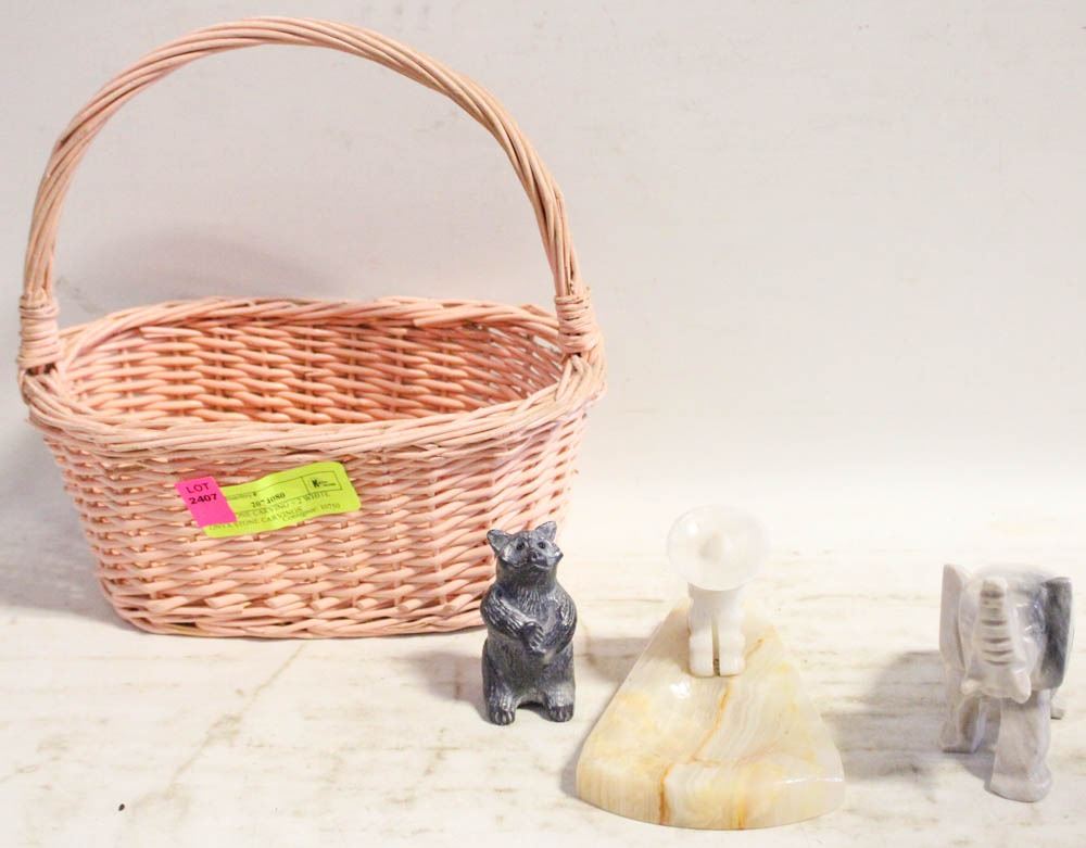 SOAPSTONE CARVING + 2 WHITE ONYX STONE CARVINGS