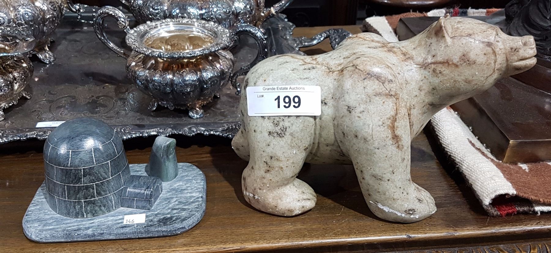 SOAPSTONE GRIZZLY BEAR SIGNED & SOAPSTONE IGLOO
