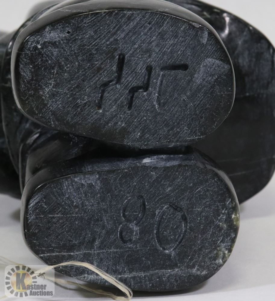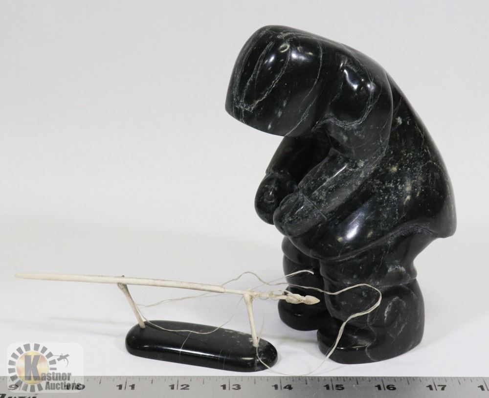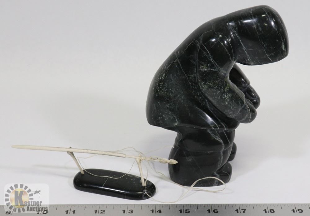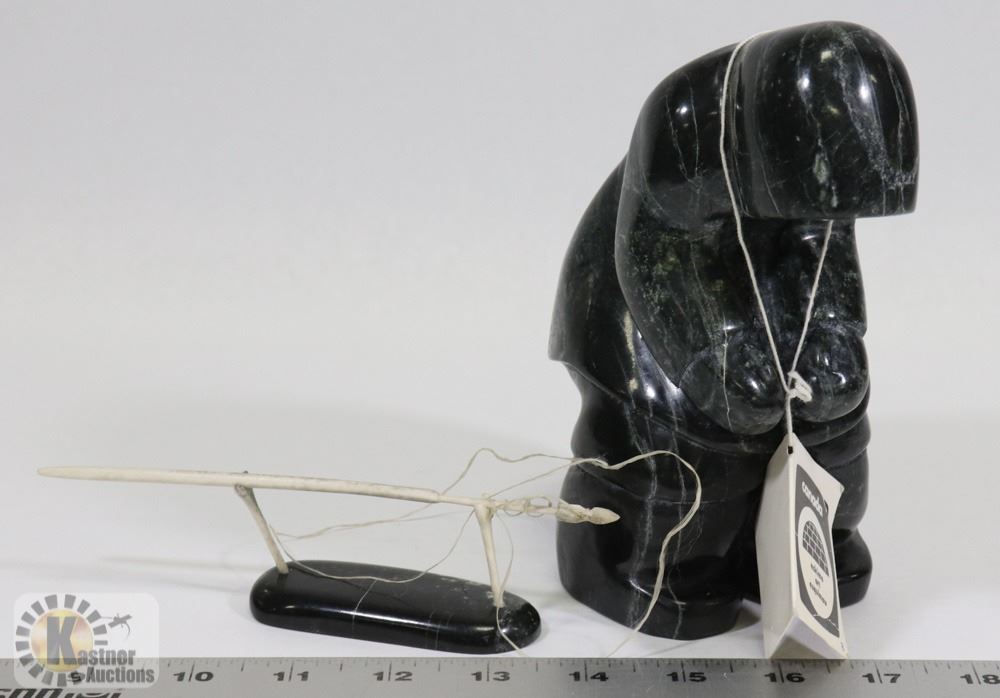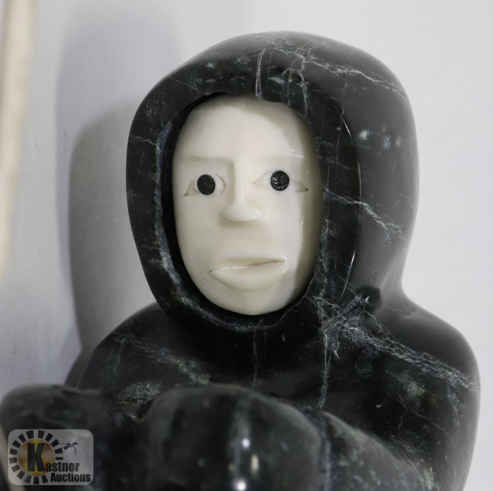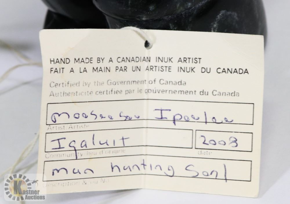 SOAPSTONE INUIT MAN HUNTING SEAL CARVING, 2008