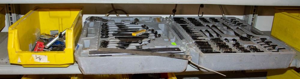 SOCKET WRENCH TOOL KIT AND BIN OF HARDWARE