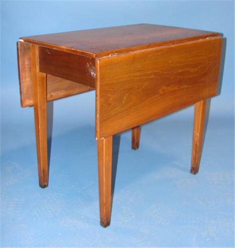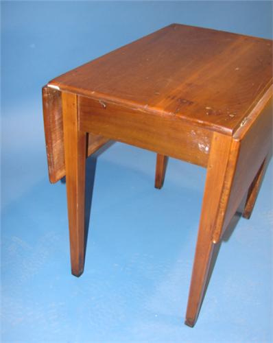 SOFTWOOD PEMBROKE TABLE. Drop-leaves. Pinned construction. Tapered legs. 22.25” H, 16” W, 24” L. Each leaf: 8.5” W