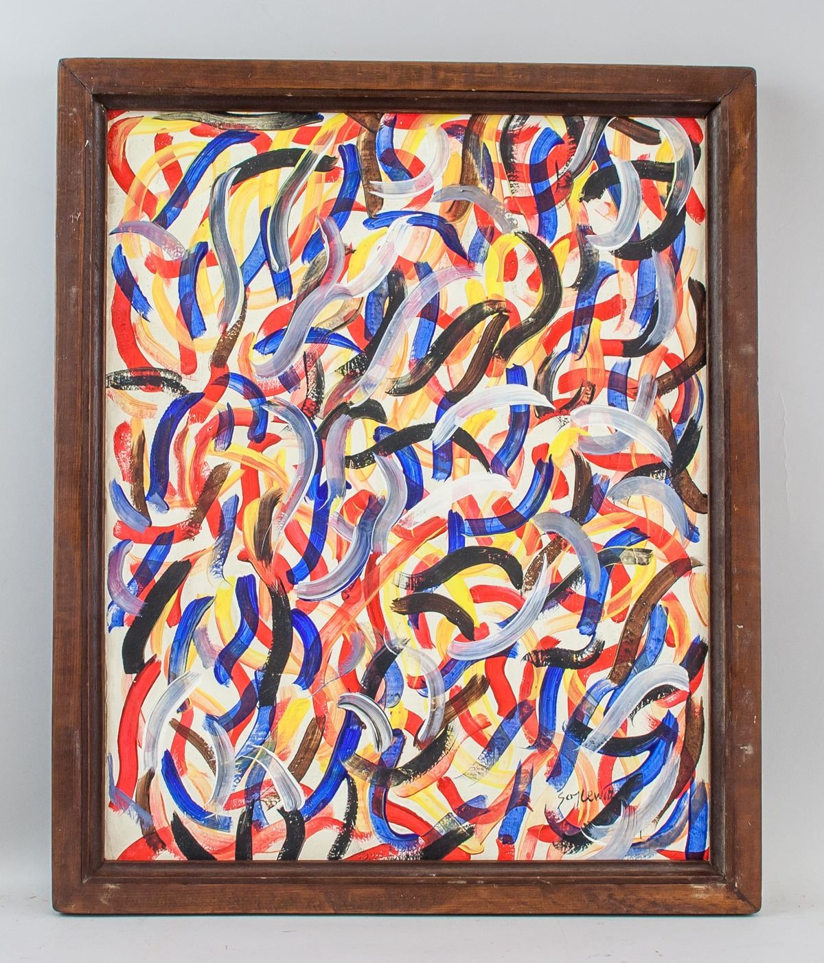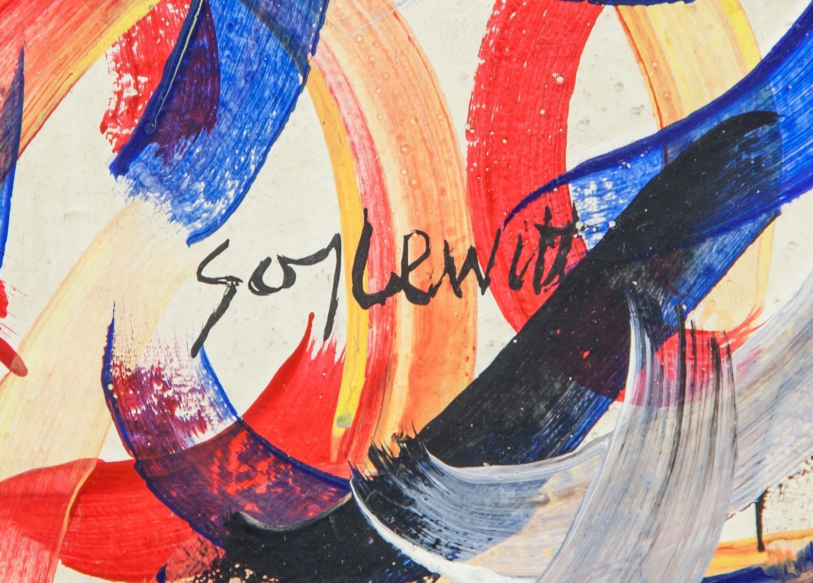 Oil on canvas, farmed. Featuring an abstract expressionist composition. Signed and attr. Sol LeWitt (American, 1928-2007) on the lower right corner. Picture size: 48 x 39 cm (18.9 x 15.4 inches), frame size: 55 x 45 cm (21.7 x 17.7 inches). Sol LeWitt was an iconic American artist whose work helped to establish both Minimalism and Conceptual Art. Lewitt’s practice was based primarily within his own intellect, establishing a rubric of formal instructions which his assistants followed to create the works. Some of the artist’s most integral pieces are his Wall Drawings, in which he explored myriad variations of applying drawn lines onto walls. “When an artist uses a conceptual form of art, it means that all of the planning and decisions are made beforehand and the execution is a perfunctory affair. The idea becomes a machine that makes the art,” he wrote in his seminal 1967 essay Paragraphs on Conceptual Art. Born Solomon LeWitt on September 9, 1928 in Hartford, CT, he received his BFA from Syracuse University before serving in the United States Army during the Korean War. After the war, he moved to New York, where he attended illustration classes and worked as a graphic designer for several magazines. During the 1950s, while experimenting with painting during the day and working nights at The Museum of Modern Art he met the artists Robert Ryman, Dan Flavin, and Robert Mangold. By the early 1960s, influenced by a combination of Robert Rauschenberg, Josef Albers, and Eadweard Muybridge, Lewitt had developed his uniquely cerebral approach to making art. The artist would go on to cofound the artist book nonprofit Printed Matter, Inc. in 1976 with writer Lucy Lippard. Over the course of his career he would have a profound influence on both his peers and younger artists including Frank Stella and Eva Hesse. LeWitt died on April 8, 2007 in New York, NY. Today, his works are held in the collections of the Art Institute of Chicago, the National Gallery of Art in Washington, D.C., the Tate Gallery in London, the Dia Art Foundation in Beacon, NY, and the Walker Art Center in Minneapolis. PROVENANCE: Southern Ontario estate