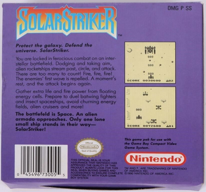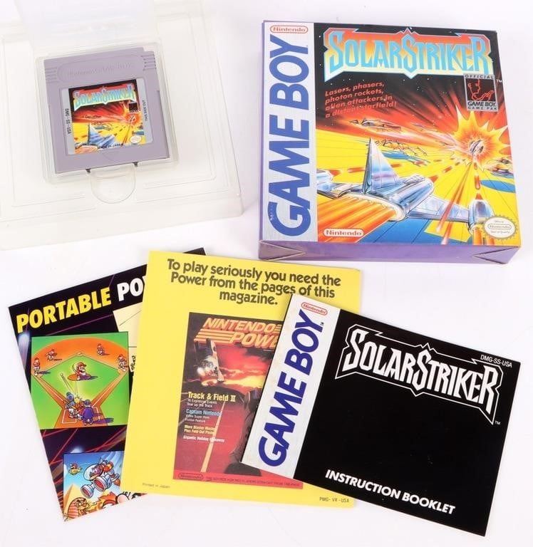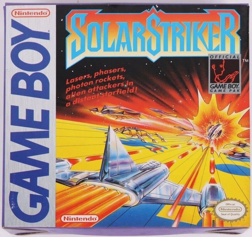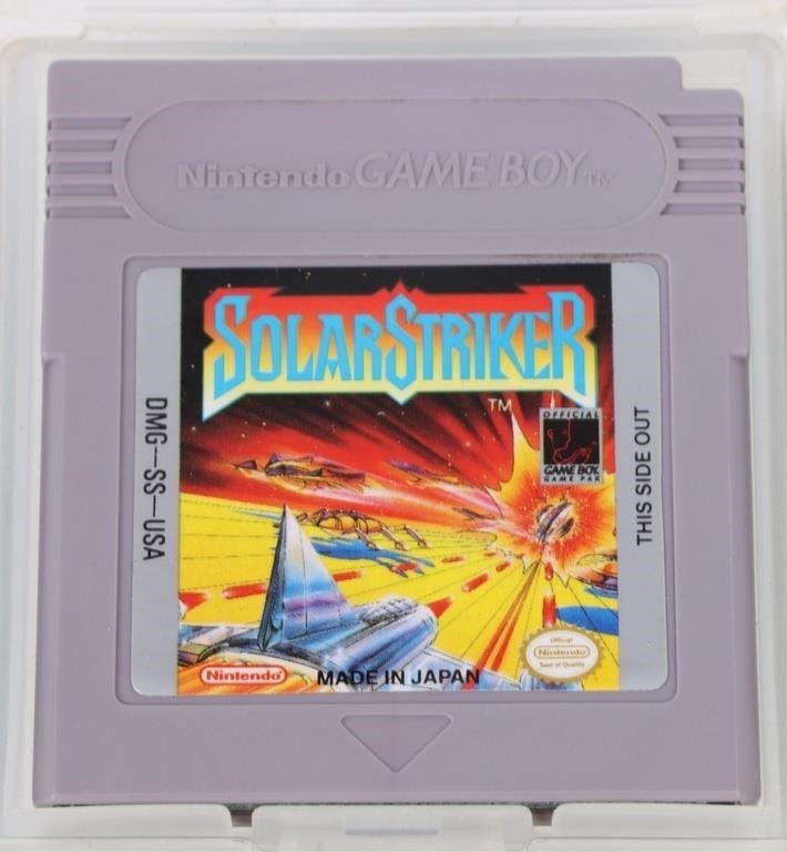 Solar Striker for the Nintendo Game Boy includes Box, Manual, and game cartridge as well as game cartridge protector. Game has not been tested.