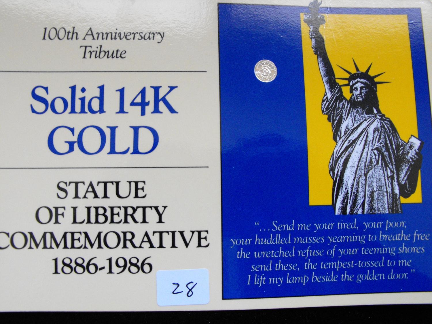 SOLID 14 K GOLD LIBERTY COMMEMORATIVE COIN