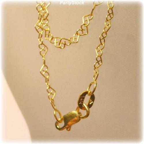 Fine chain of exquisite Hearts is created from solid 14 Karat yellow gold. Unique and very feminine! Measures 18 inches.<p> Please see our excellent feedback and satisfaction guarantee below. Click on photos to enlarge and view detail. Thanks for your patronage!