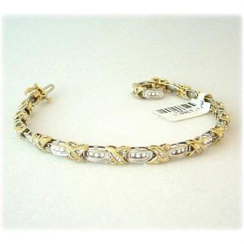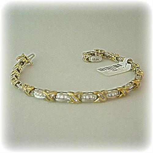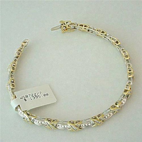 14 Karat White and Yellow Gold sets 1 Carat of Round Cut, Genuine Diamonds. A stunning mix of yellow and white gold is entertwined and sparkles with one carat of genuine, sparkling diamonds. Truly an exquisite piece. <p>These high quality Diamonds possess H-I Color and I1/I2 Clarity.<p>