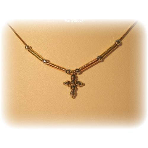UNIQUE! This necklace is 100% 14 Karat White, Yellow and Rose Gold. Cross measures and it's fashioned from white, yellow and rose gold. STUNNING!