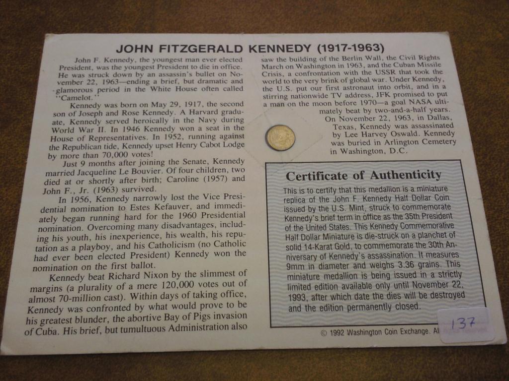 SOLID 14K GOLD JFK TOKEN 3.36 GRAINS