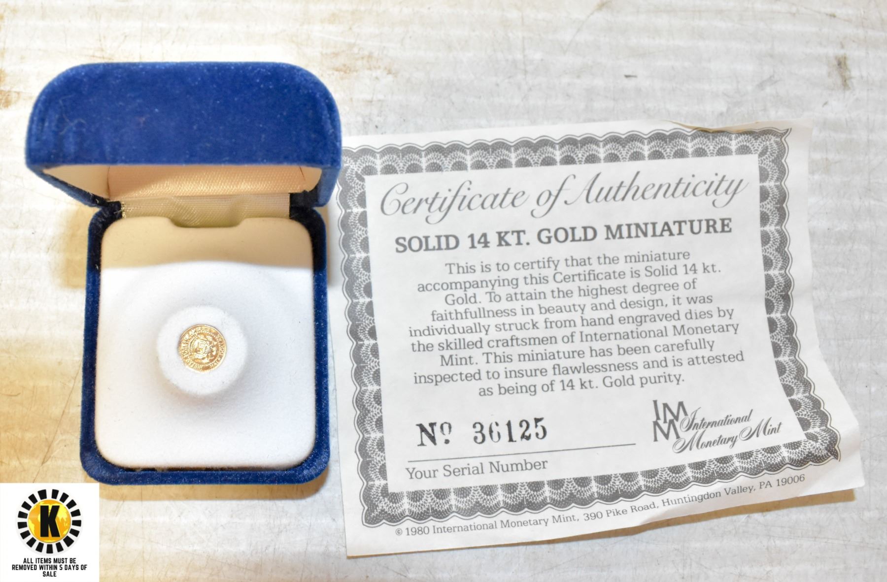 SOLID 14K GOLD MINIATURE COIN IN CASE