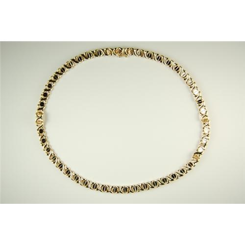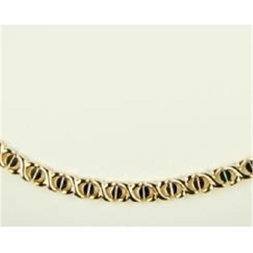 This beautiful NECKLACE is 14k YELLOW GOLD and it features swirled 'x's alternating with a round 14k White Gold 'screw' design. This Gold Necklace is 17 inches in length and it is 8MM in width.