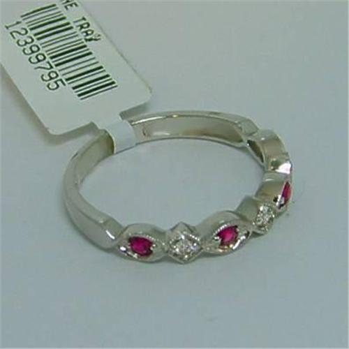 Solid 14 Karat White Gold sets Genuine Rubies and Diamonds in this Eternity Band.