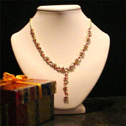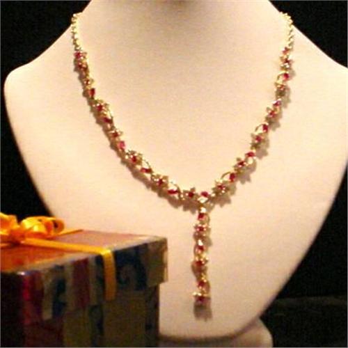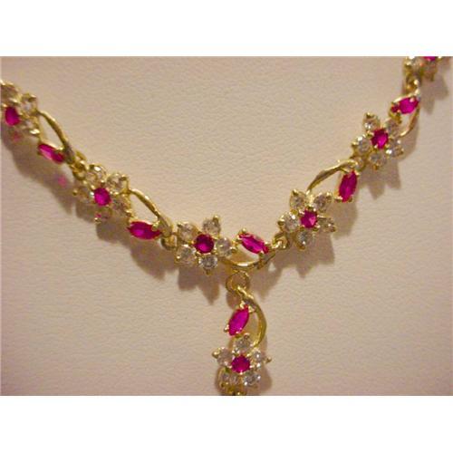 [137267826] STUNNING SYNTHETIC RUBY AND DIAMOND NECKLACE IS SET IN SOLID 14 KARAT GOLD! FABULOUS NECKLACE MEASURES APPROX. 17 INCHES.