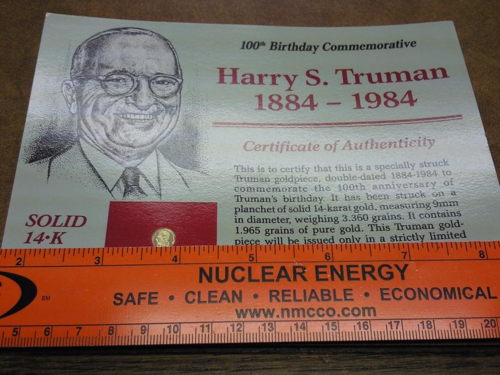 SOLID 14K GOLD TRUMAN MEDAL 1.965 GRAINS OF GOLD