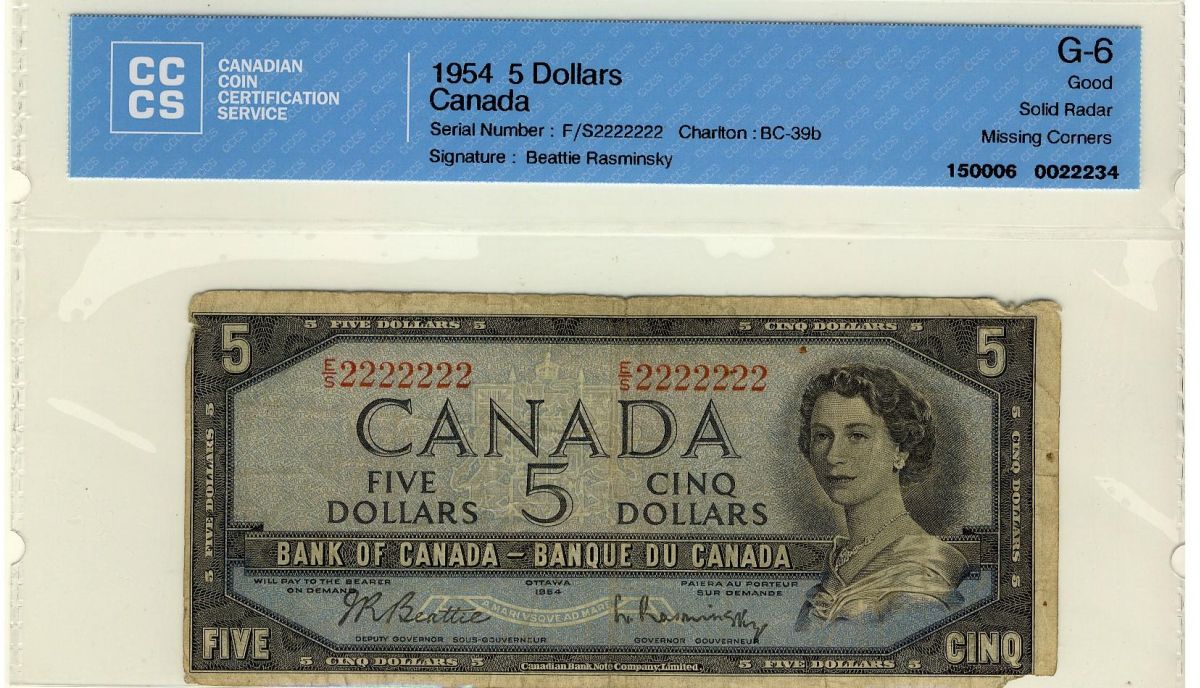 SOLID 1954 $5 BC-39b #ES2222222 CCCS G6 Missing small corner