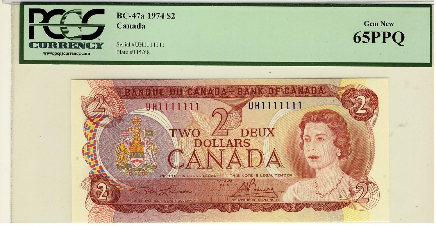 SOLID 1974 $2 BC-47a #UH1111111 PCGS Gem UNC65PPQ.