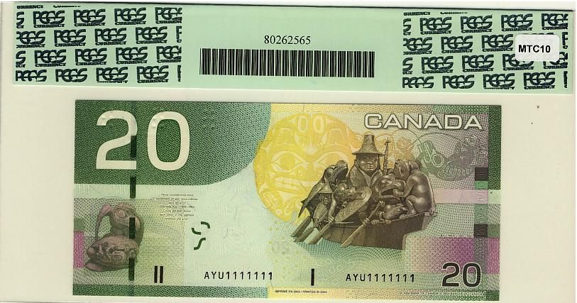 SOLID 2004 $20 BC-64a #AYU1111111, PCGS Superb Gem UNC67 PPQ.