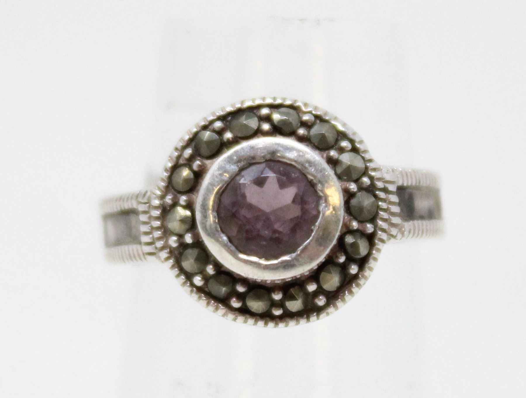 SOLID .925 SILVER AMETHYST GEMSTONE RING