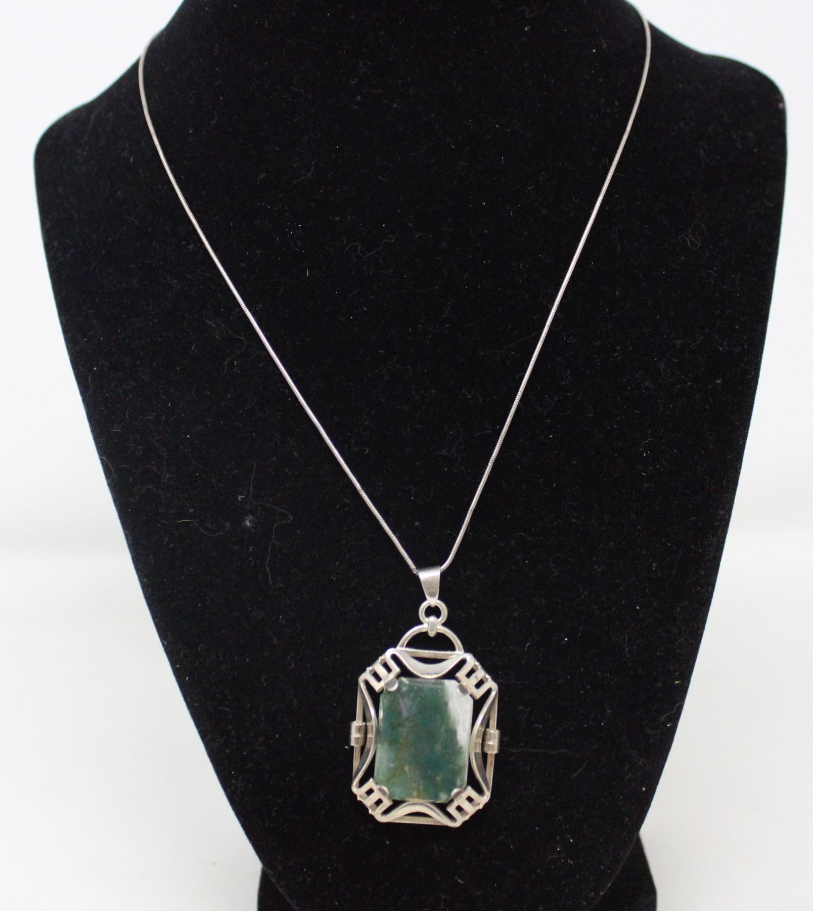 SOLID .925 SILVER CHAIN & GEMSTONE PENDANT, 11.12g