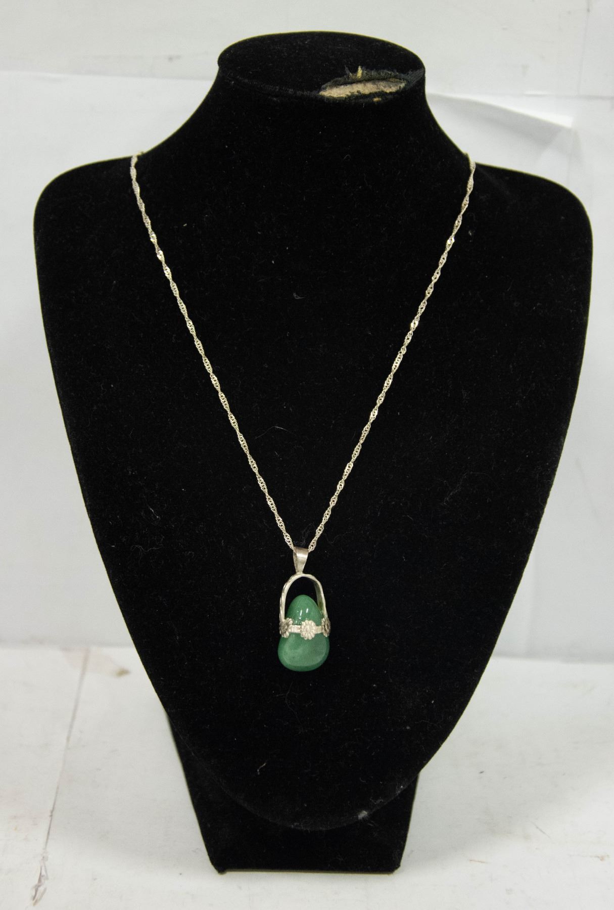 SOLID .925 SILVER STAMPED CHAIN AND GEM PENDANT
