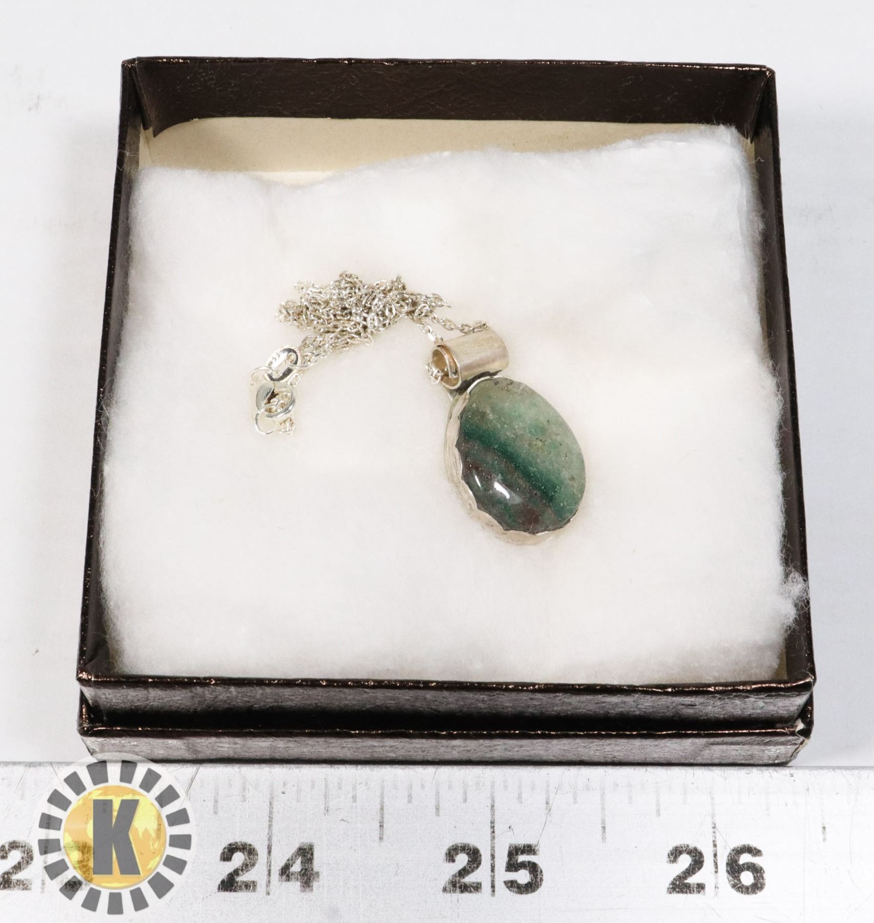 SOLID .925 SILVER STAMPED CHAIN AND GEM PENDANT