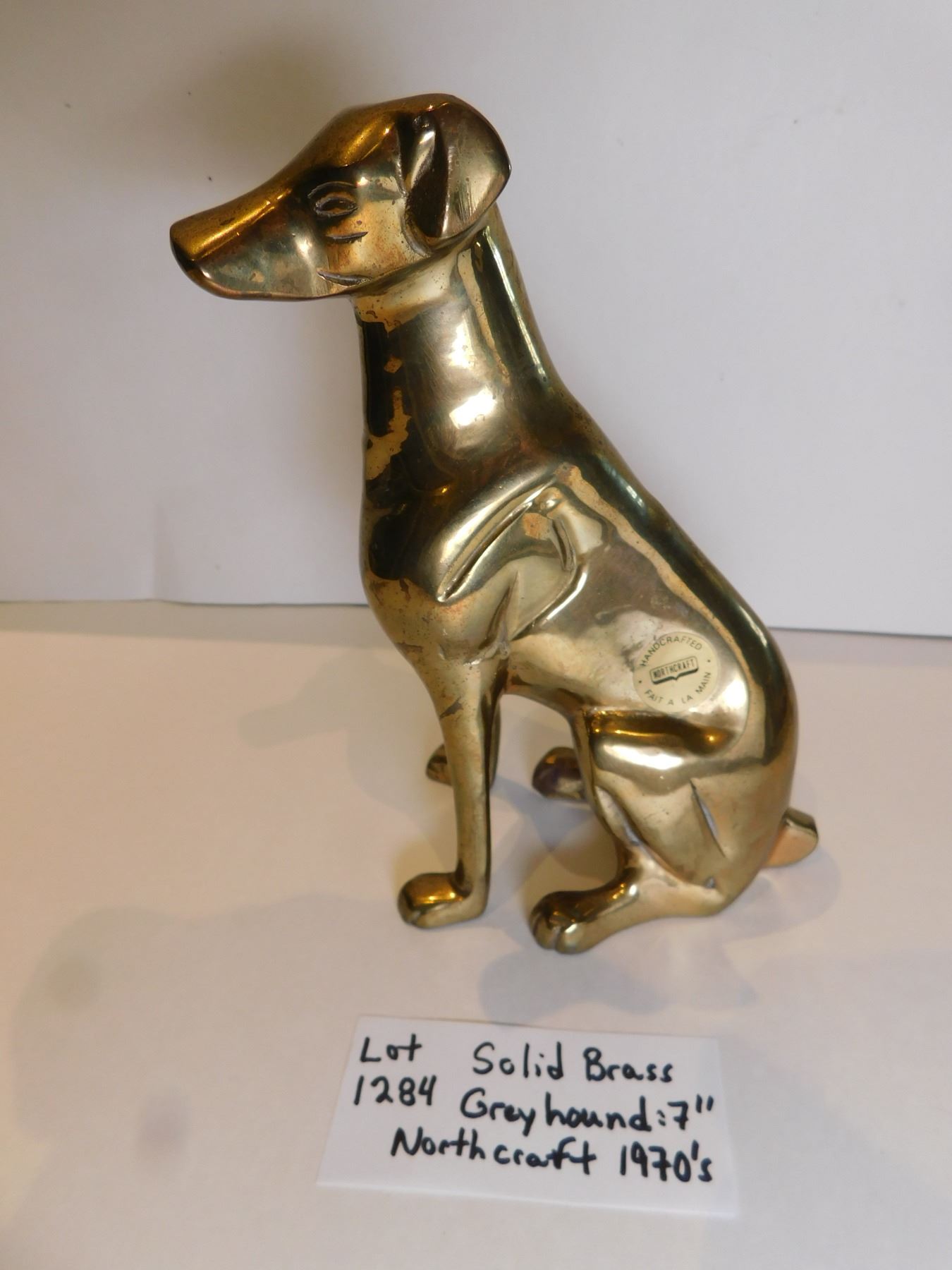 SOLID BRASS GREYHOUND, 7” TALL, NORTHCRAFT 1970’S, WITH TAG