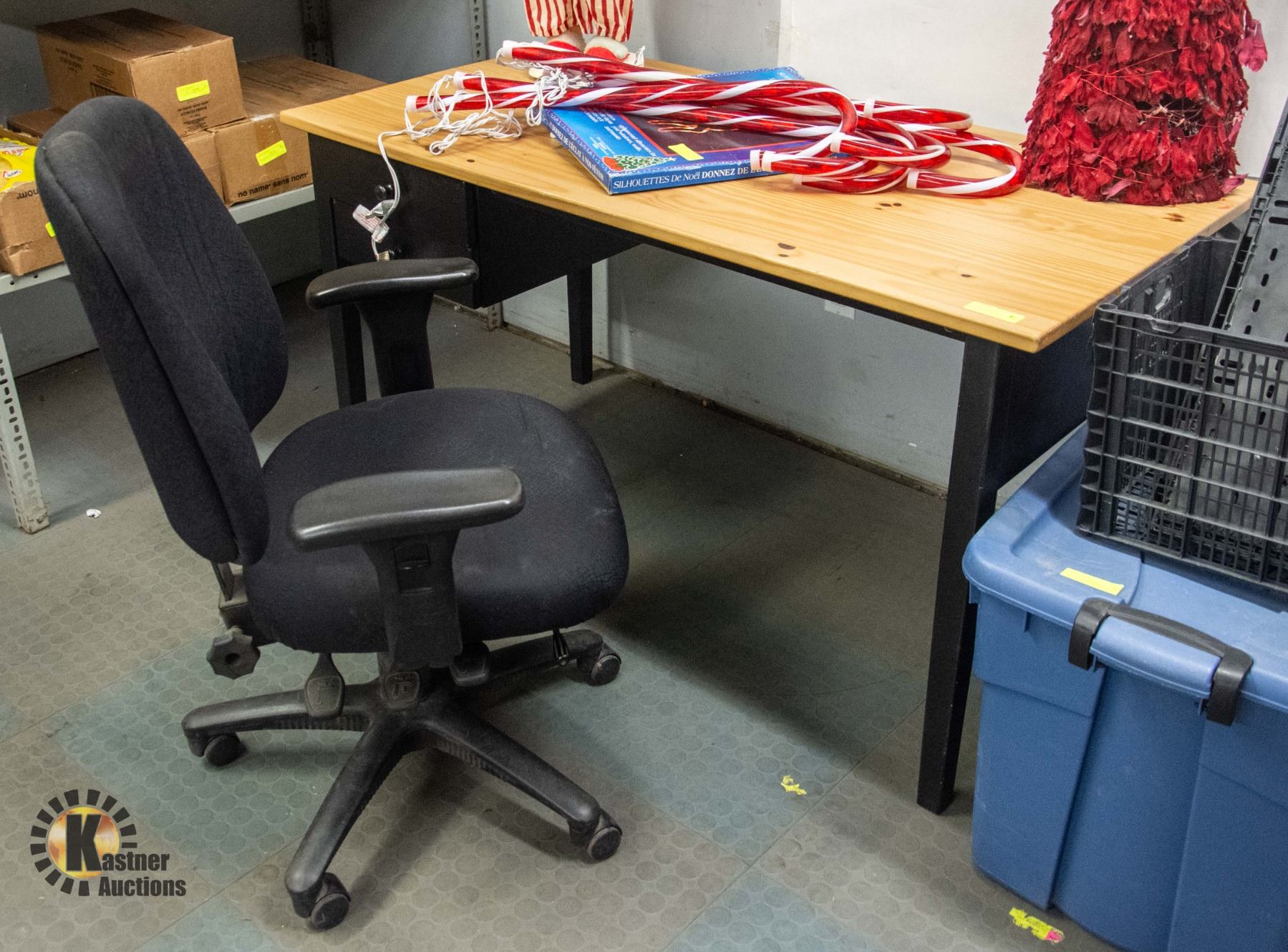 NATURAL SOLID PINE TOP WITH OFFICE CHAIR (55"L X 27.5"W X 29.25"H) **ALL ITEMS MUST BE REMOVED BY 5PM SATURDAY, NOVEMBER 30TH 2024. ALL REMAINING ITEMS WILL BE SUBJECT TO A $6.00 PER DAY STORAGE CHARGE. ANY ITEMS REMAINING AFTER MONDAY, DECEMBER 16TH 2024 WILL BE CONSIDERED FORFEITED. NO REFUNDS WILL BE ISSUED FOR FORFEITED ITEMS. TO SCHEDULE A PICK UP APPOINTMENT CLICK HERE