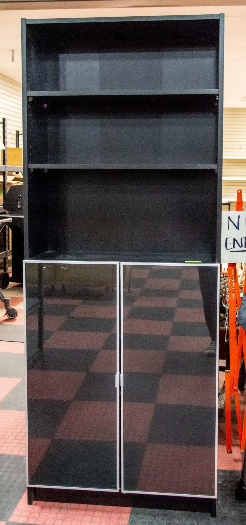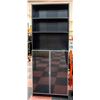 BOTTOM 2-DOOR FROSTED GLASS CABINET WITH SHELVES AND OPEN-TOP WITH SHELVES - 6 SHELVES, ADJUSTABLE HEIGHT (31.5"L X 12"W X 79.5"H)