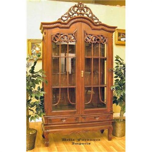 New hand carved solid mahogany Display Cabinet/ Showcase. This piece is constructed from heavy solid mahogany wood and build to last a lifetime. This piece is finished with rich mahogany stain.