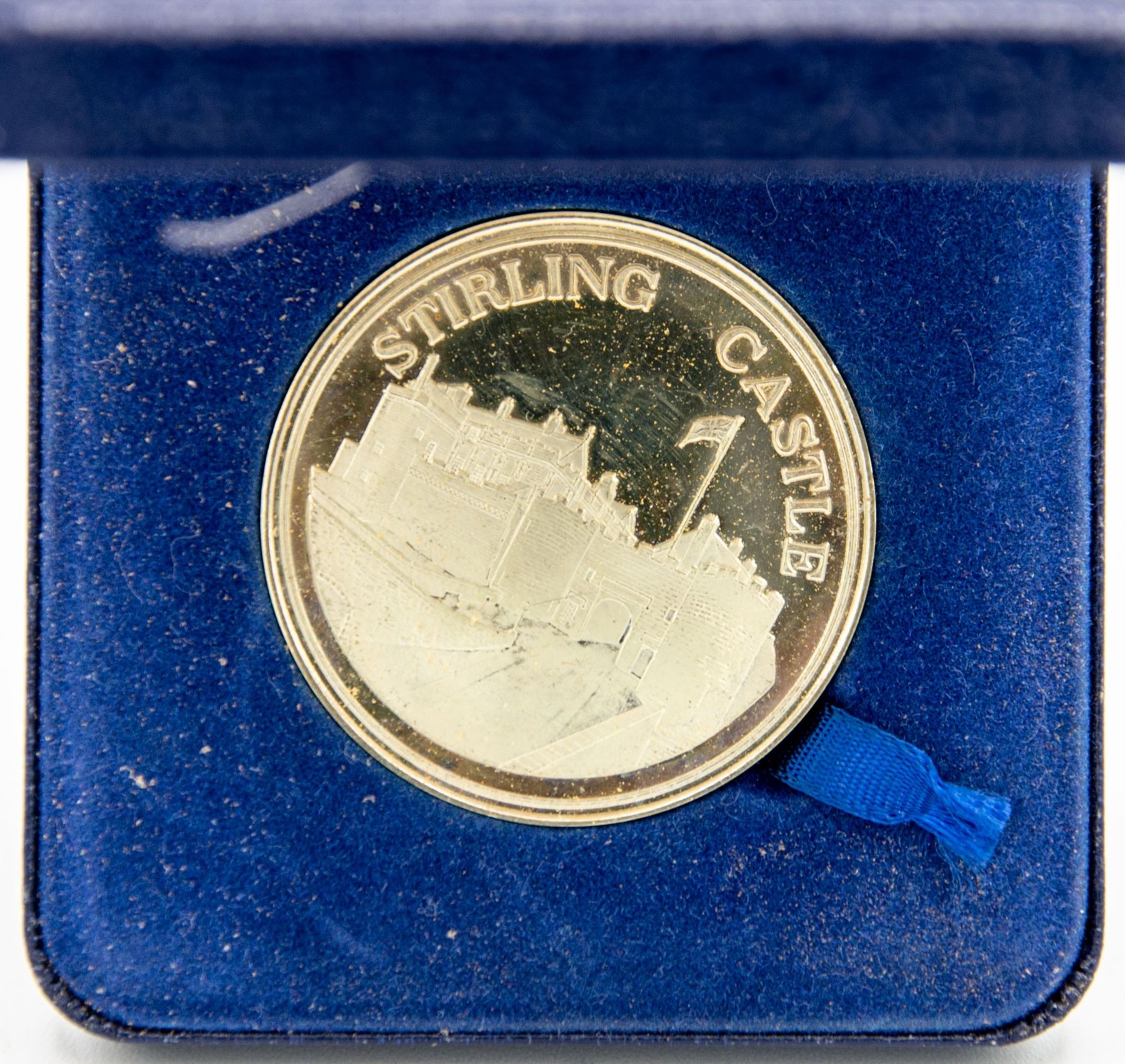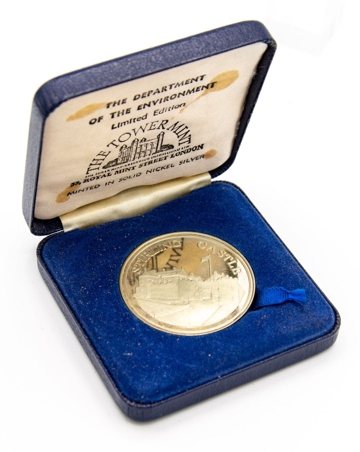 SOLID NICKEL SILVER STERLING CASTLE MEDAL IN CASE