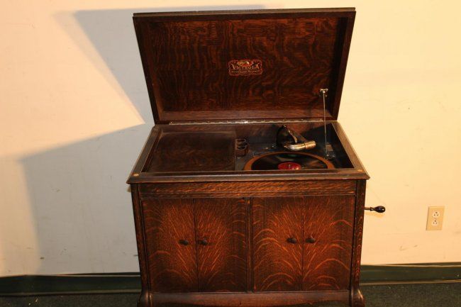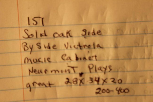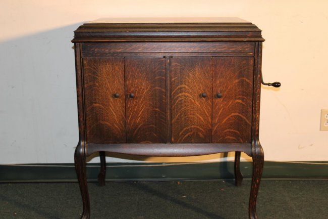 SOLID OAK SIDE-BY-SIDE VICTROLA MUSIC CABINET - NEAR MINT - PLAYS GREAT - 28 X 34 X 20
