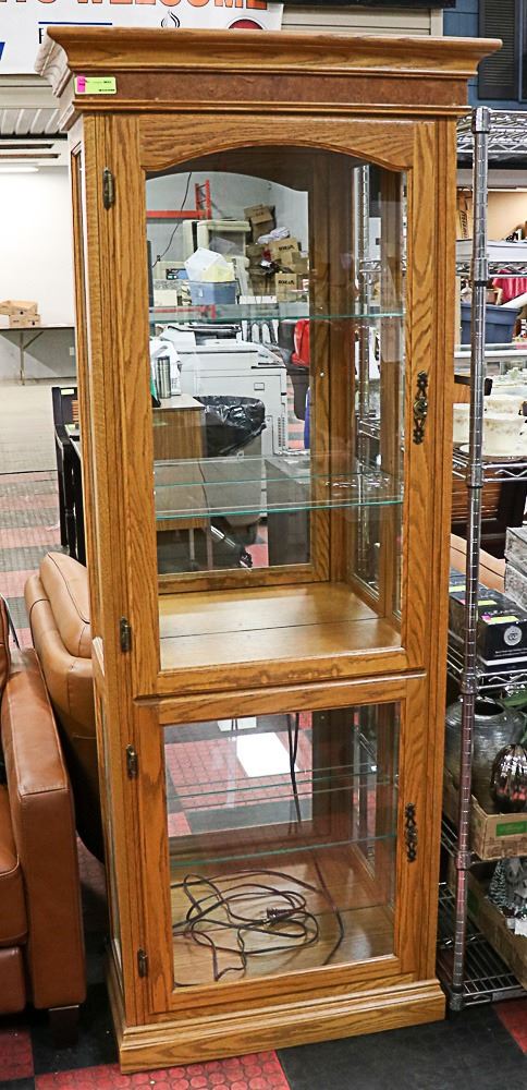 SOLID OAK TALL DISPLAY CABINET
