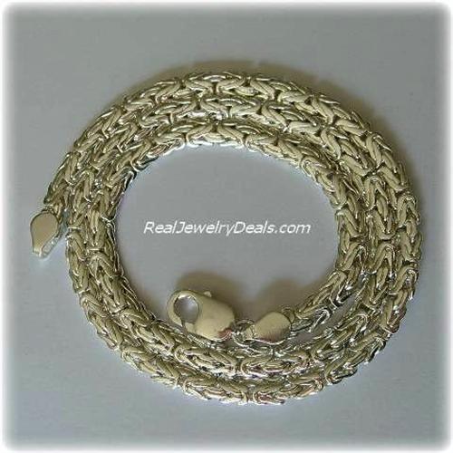This Supple Solid Sterling Silver Byzantine Chain Necklace will be your favorite! Measuring 22 inches in length, it defines “luxuriousâ€! Weighs a heavy 50 grams, so you know it’s a rich “gotta have it†piece. We’ve finished it with a large, handsome Lobster clasp that makes it easy to put on, and adds panache! <BR><BR>