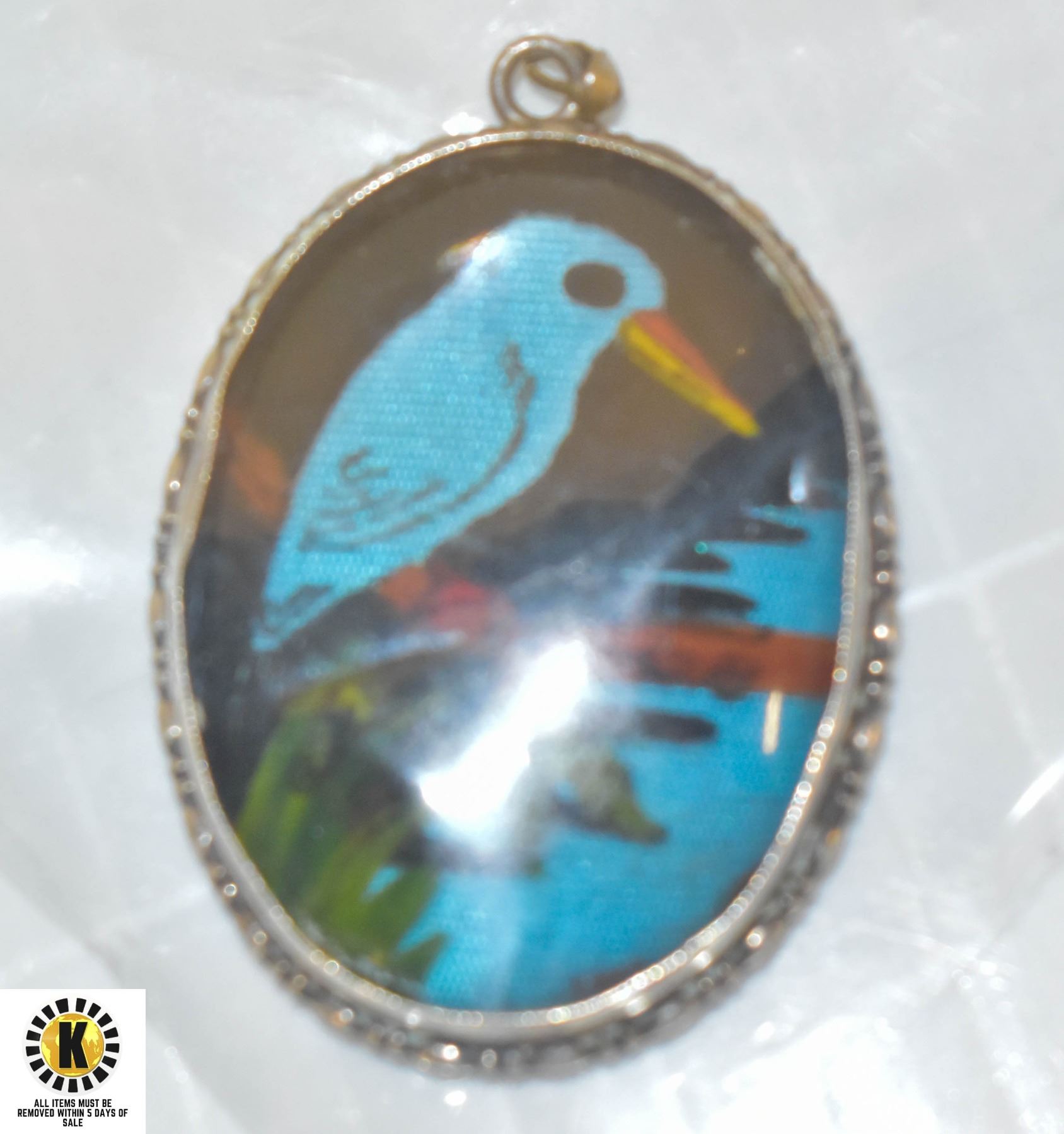 SOLID STERLING SILVER HAND PAINTED BIRD PENDANT