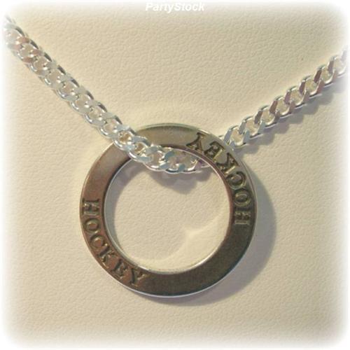 Solid Sterling Silver Hockey Affirmation Ring Necklace! We've strung this Solid Sterling SIlver Affirmation Ring on our heavy, 20 inch, Rolo Chain of Solid Sterling Silver. Looks great on a guy or a girl. (We have other Hockey Necklaces. See this link: http://stores.ebay.com/Jewelry-Diamonds-Gold-Silver-Italy and type HOCKEY into the Search Bar on the left.)