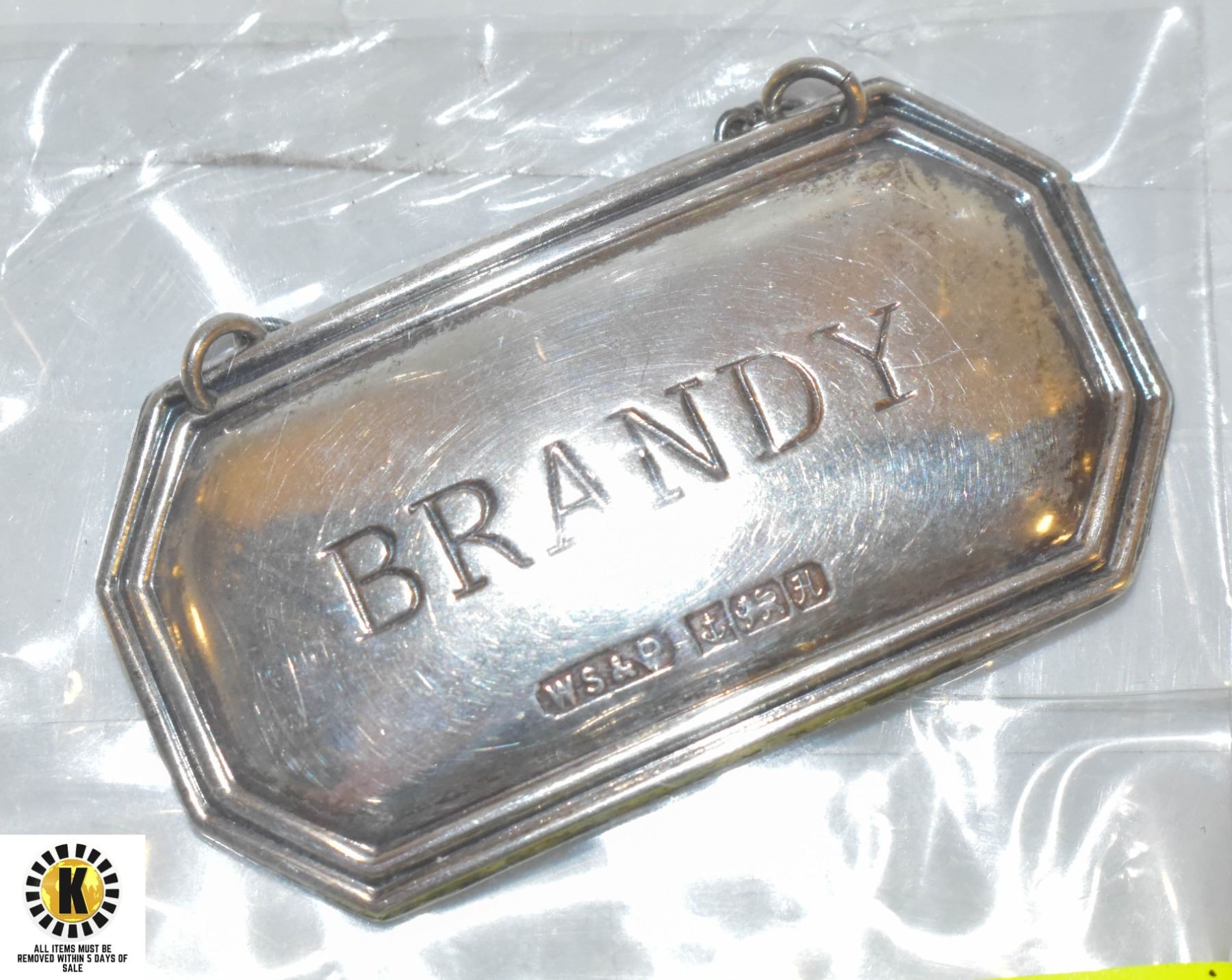 SOLID STERLING SILVER OLD BRANDY DECANTER LABEL