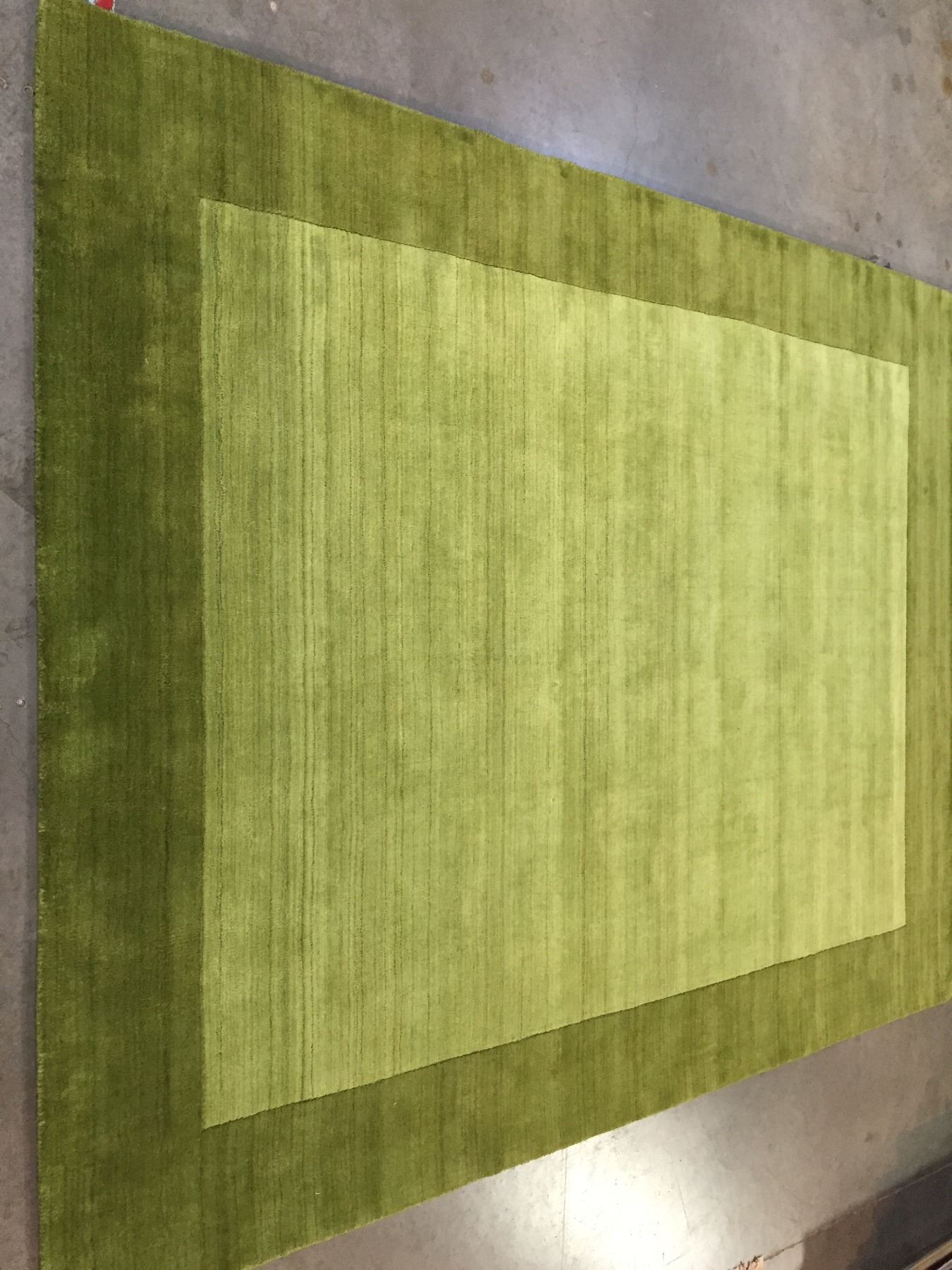 8x10 Decorative modern Solid 2 tone design Brand Name wool rug, Carved and textured in two tone of Pistachio green colors, 100% fine and soft natural wool, thick pile, Hand tufted in India.
