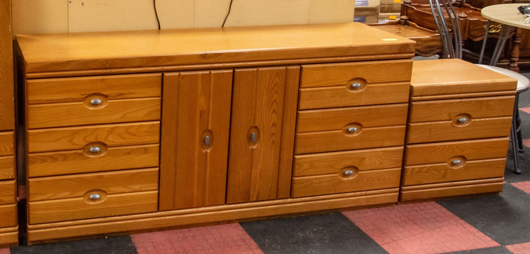 LONG DRESSER WITH 6 EASY ROLLER DRAWERS AND 2-SHELF CABINET (66"L X 17.5"W X 31"H) AND A NIGHT TABLE DRESSER WITH 2 DRAWERS (21.25"L X 16"W X 22.5"H) **ALL ITEMS MUST BE REMOVED BY 5PM SATURDAY, JANUARY 21ST 2023. ALL MAGIC SPACE ITEMS MUST BE REMOVED BY WEDNESDAY, JANUARY 18TH AND ARE LOCATED AT 9058-22 AVENUE SW #102. **ALL REMAINING ITEMS WILL BE SUBJECT TO A $6.00 PER DAY STORAGE CHARGE. ANY ITEMS REMAINING AFTER MONDAY, FEBRUARY 6TH, 2023 WILL BE CONSIDERED FORFEITED. NO REFUNDS WILL BE ISSUED FOR FORFEITED ITEMS. TO SCHEDULE A PICK UP APPOINTMENT CLICK HERE