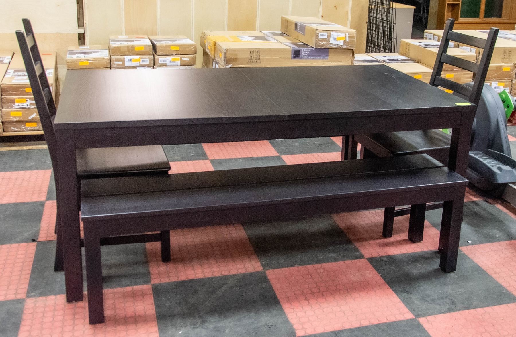LEAFS, TWO BENCHES AND TWO CHAIRS - TABLE MEASURES: 69"L X37.5"W X 29.5"W PLUS TWO 16.5"-LEAFS AND BENCHES MEASURE: 62"L X 14"W X 17.5"H (HAS MINOR REPAIR) **ALL ITEMS MUST BE REMOVED BY 5PM SATURDAY, FEBRUARY 4TH 2023.** ALL REMAINING ITEMS WILL BE SUBJECT TO A $6.00 PER DAY STORAGE CHARGE. ANY ITEMS REMAINING AFTER MONDAY, FEBRUARY 20TH, 2023 WILL BE CONSIDERED FORFEITED. NO REFUNDS WILL BE ISSUED FOR FORFEITED ITEMS. TO SCHEDULE A PICK UP APPOINTMENT CLICK HERE