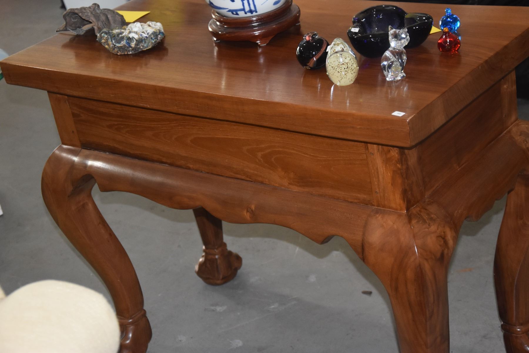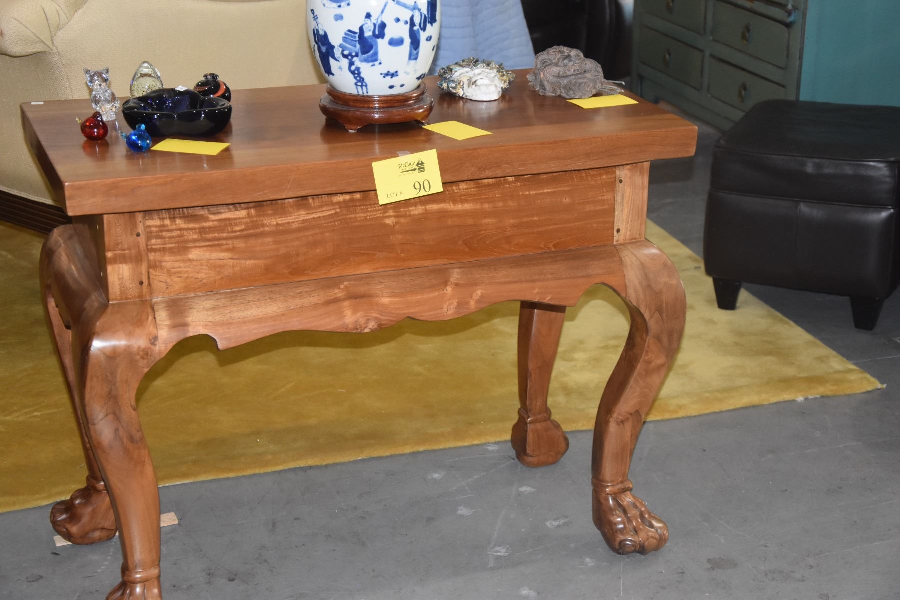 SOLID WOOD SIDE TABLE W/CARVED CLAW FEET (40 1/2" X 20" X 31 1/2")