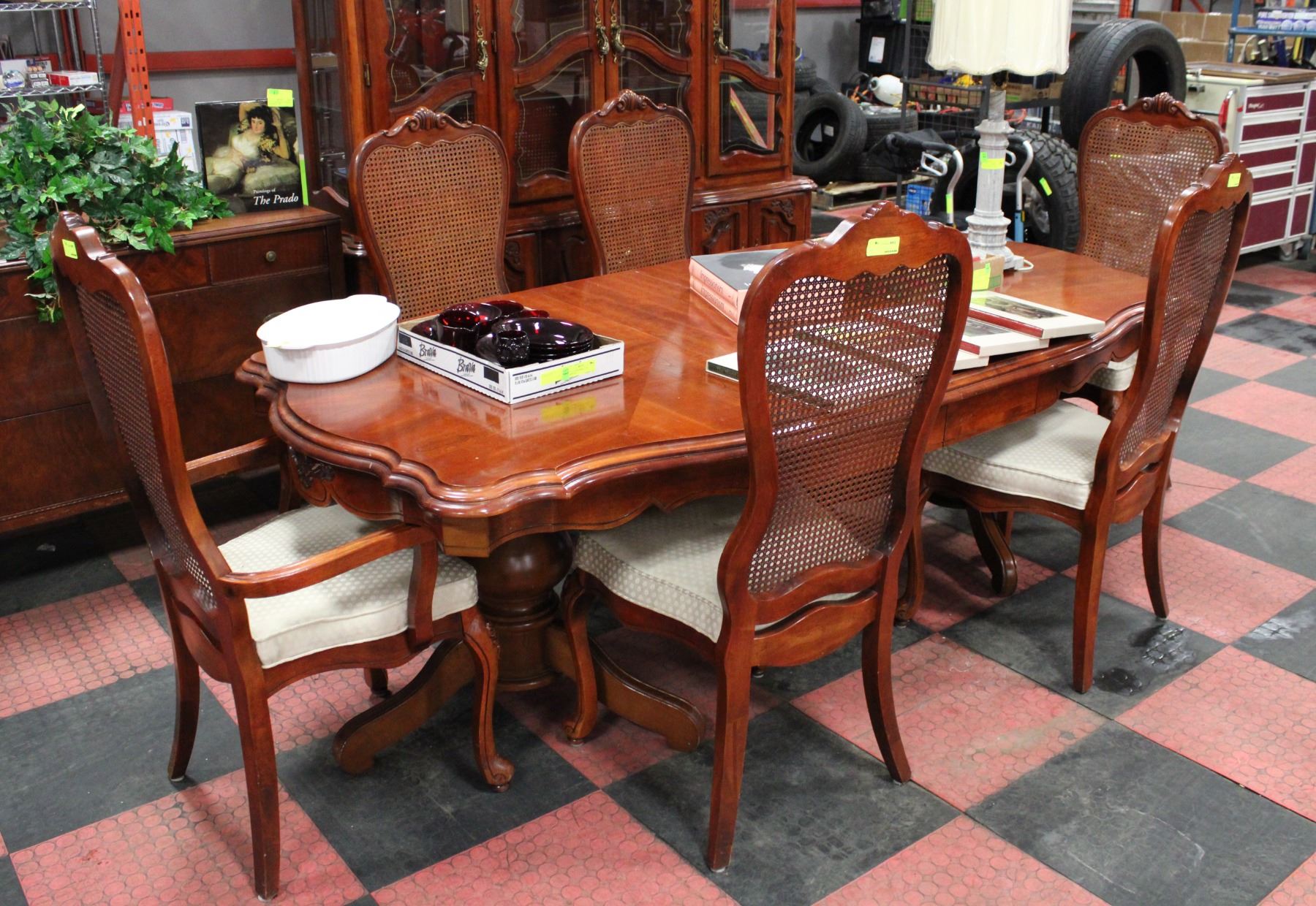 SOLID WOOD TABLE WITH 6 CHAIRS AND LEAFS