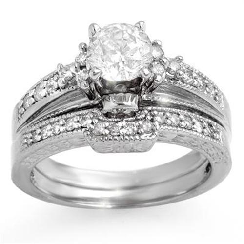 GENUINE 1.30 ctw DIAMOND ENGAGEMENT LADIES RING WITH ONE MATCHING GUARD IN 14KT WHITE GOLD (ring can be worn w/o the guards)