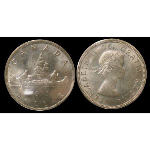 SOLO HIGHEST GRADED! 1955 Arnprior with Die Break ICCS MS65 PQ++ golden tones over full underlying luster. Wow! An amazing example of this very rare variety. Excellent strike with clean fields and great surfaces. The nicest example ever handled by TCN