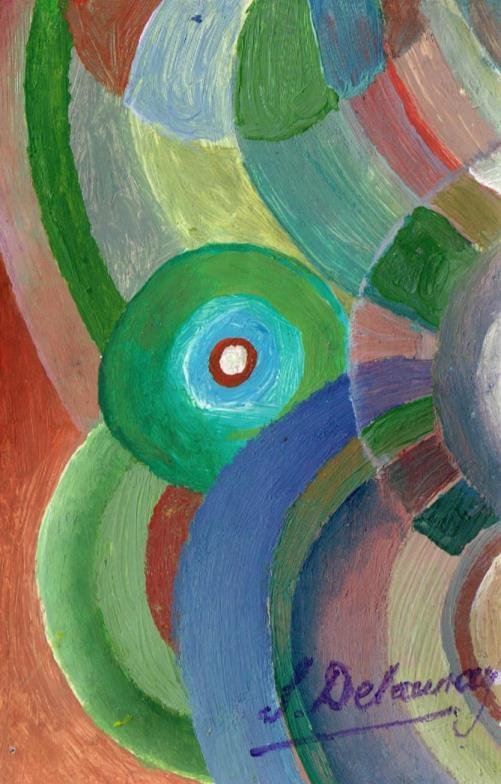 A painting of circles by Ukrainian born French artist Sonia Delaunay. Size: Approx 9x7 inches including mount. Professionally framed and supplied with coa. In very good condition. Her work extends to painting, textile design and stage set design. She was the first living female artist to have a retrospective exhibition at the Louvre in 1964, and in 1975 was named an officer of the French Legion of Honor.