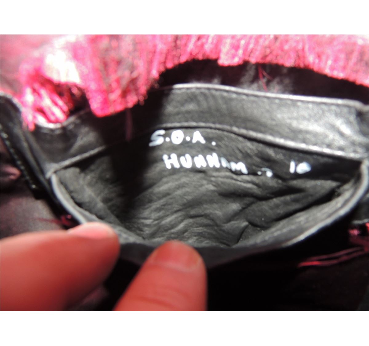 Says S.O.A and Hunnam printed in the pocket.
