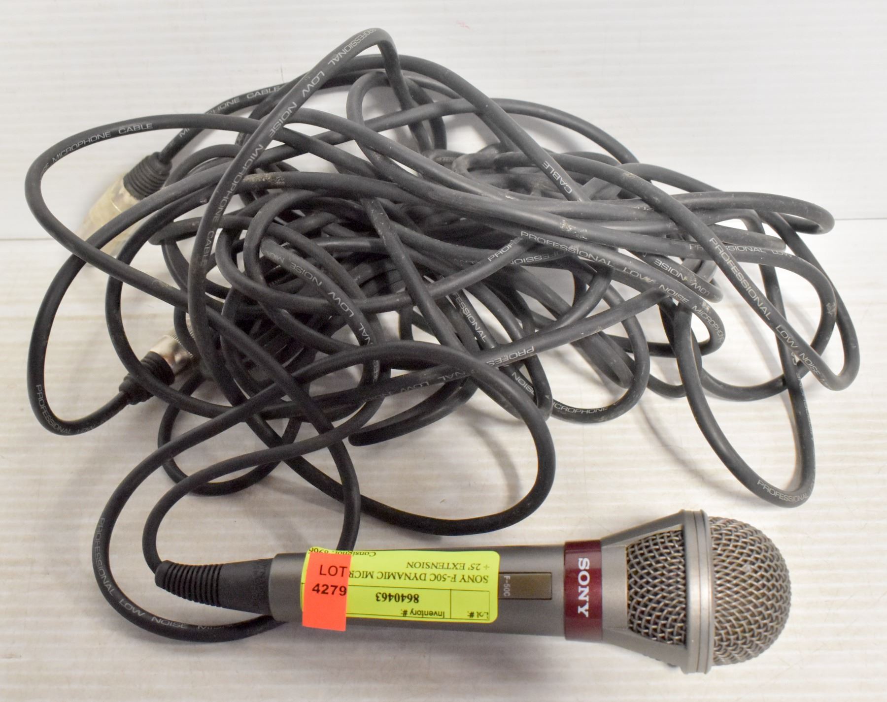 SONY F-50C DYNAMIC MIC 16 FOOT CABLE + 25 FOOT EXTENSION CABLE