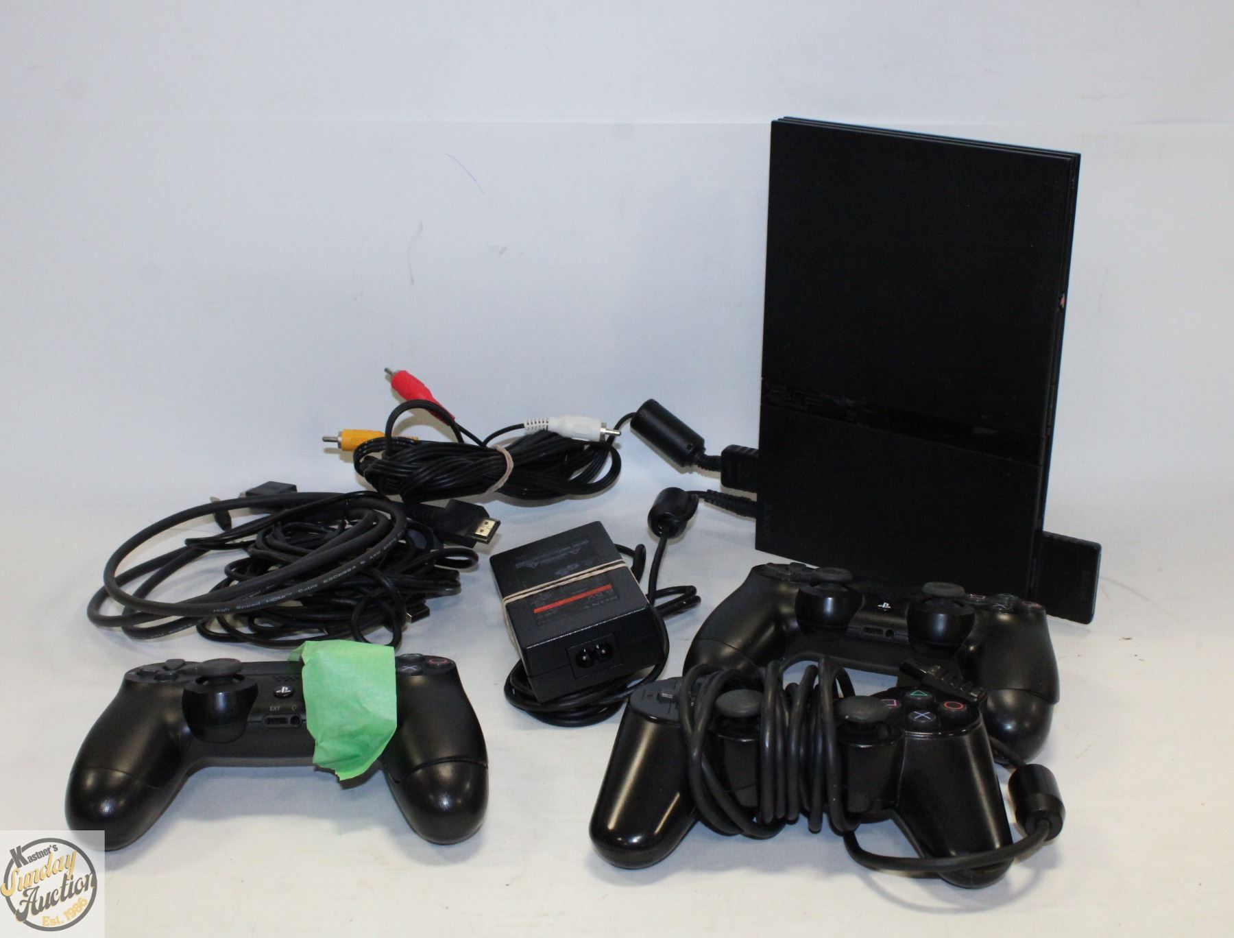 SONY PLAYSTATION 2 CONSOLE WITH 3 CONTROLLERS,