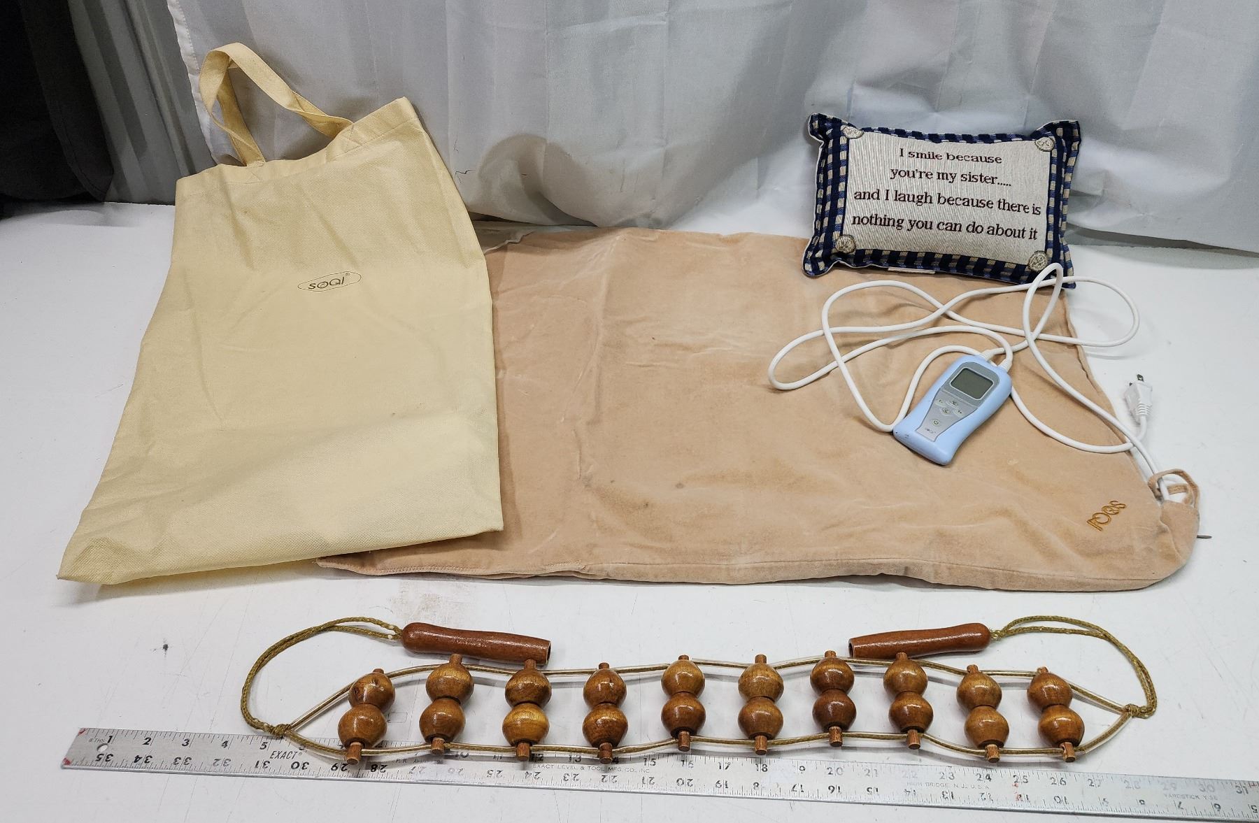 "SOQL" heated electric pad - w/ instructions, exercise beads & Sister pillow
